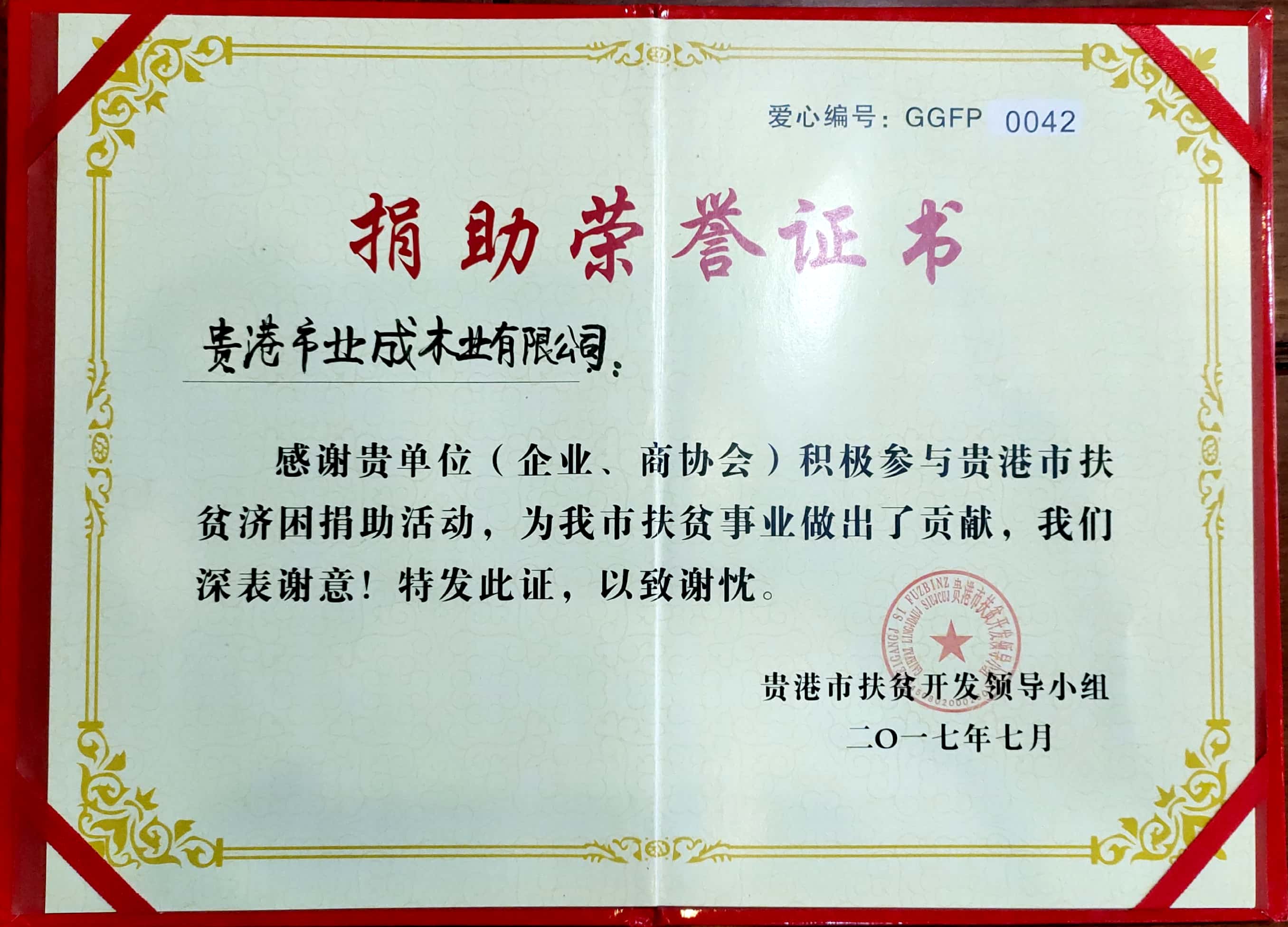 2017捐资助学荣誉证书